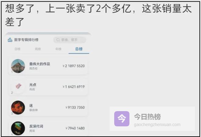 不是说《最伟大的作品》卖了太多的意思,而是因为《最伟大的作品》的出现,让许多网友不再闭眼买周杰伦的专辑了。
