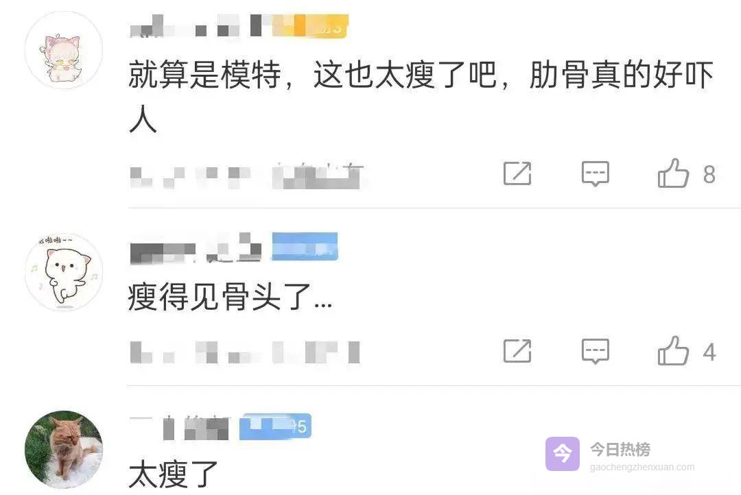2.3 ◇ 高级脸撑住场面,仍挡不住“干瘪”质疑 好在她的脸蛋保留了“上下窄、中庭宽”的立体结构,颧骨高、鼻梁挺,淡妆一上,依旧洋气。可“排骨胸”还是让部分网友直呼“太虐”,认为“模特也要适度健康”。