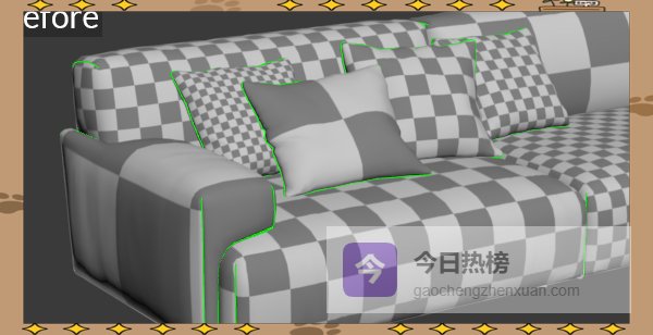 2.7 △ 检查与恢复——崩溃也不怕 内置棋盘格纹理可实时显示UV错位, 一旦模型崩溃,可一键恢复原始材质,减少返工。