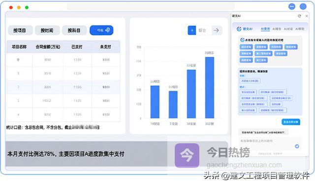 痛点:如果你问“上个月成本多少?”,AI如果只回你“500万”,这个信息量其实是很匮乏的。这500万是人工费还是材料费?是超支了还是节约了?解决方案:报表化呈现能以结构化的方式,将金额、进度、对比数据、异常项等多维度信息一次性铺陈在你面前。它承载的不仅仅是结果,更是支撑你决策的完整上下文。