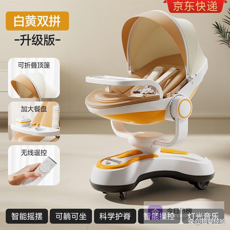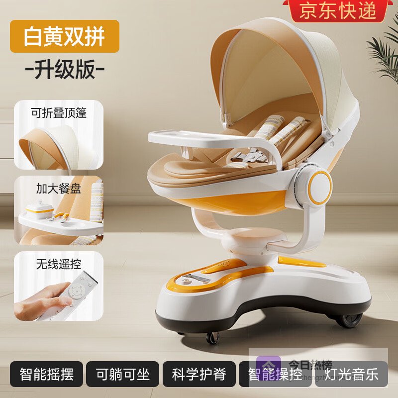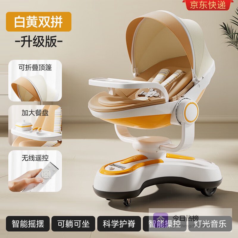 巴塞博电动婴儿摇摇椅哄睡觉神器婴儿摇椅哄娃神器宝宝可躺安抚床摇篮床【智能摇椅餐椅二合一】遥控黄+坐躺¥