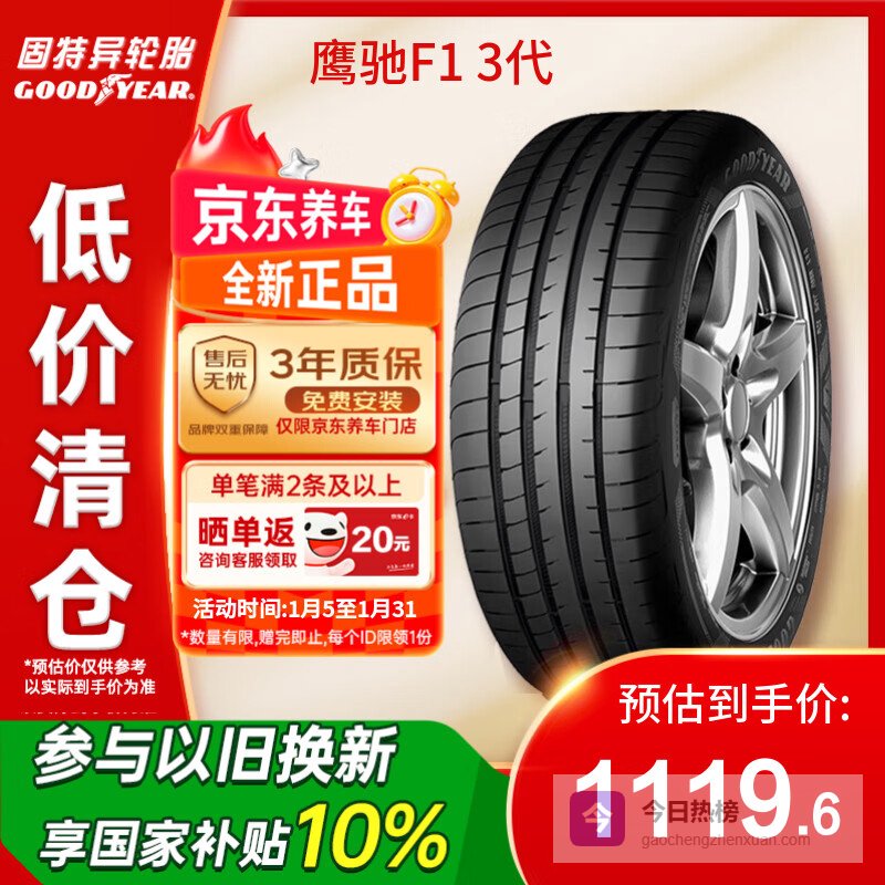 推荐入手:固特异鹰驰F1 3代轮胎 245/45R19 102Y