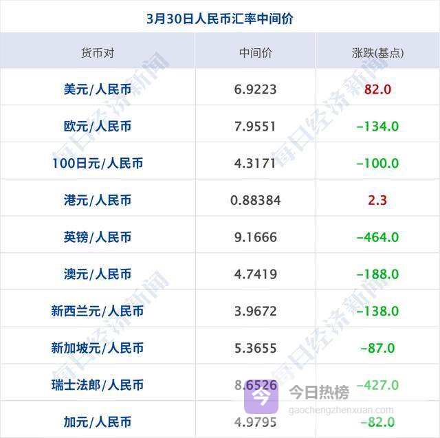 当地时间3月30日,纽约尾盘,美元指数涨0.32%报100.51,非美货币多数下跌。离岸人民币(CNH)兑美元报6.9163元,较上周五纽约尾盘涨37点,日内整体交投于6.9269-6.9090元区间。在岸人民币兑美元(CNY)北京时间03:00收报6.9127元,较上周五夜盘收盘跌17点。成交量456.90亿美元。
