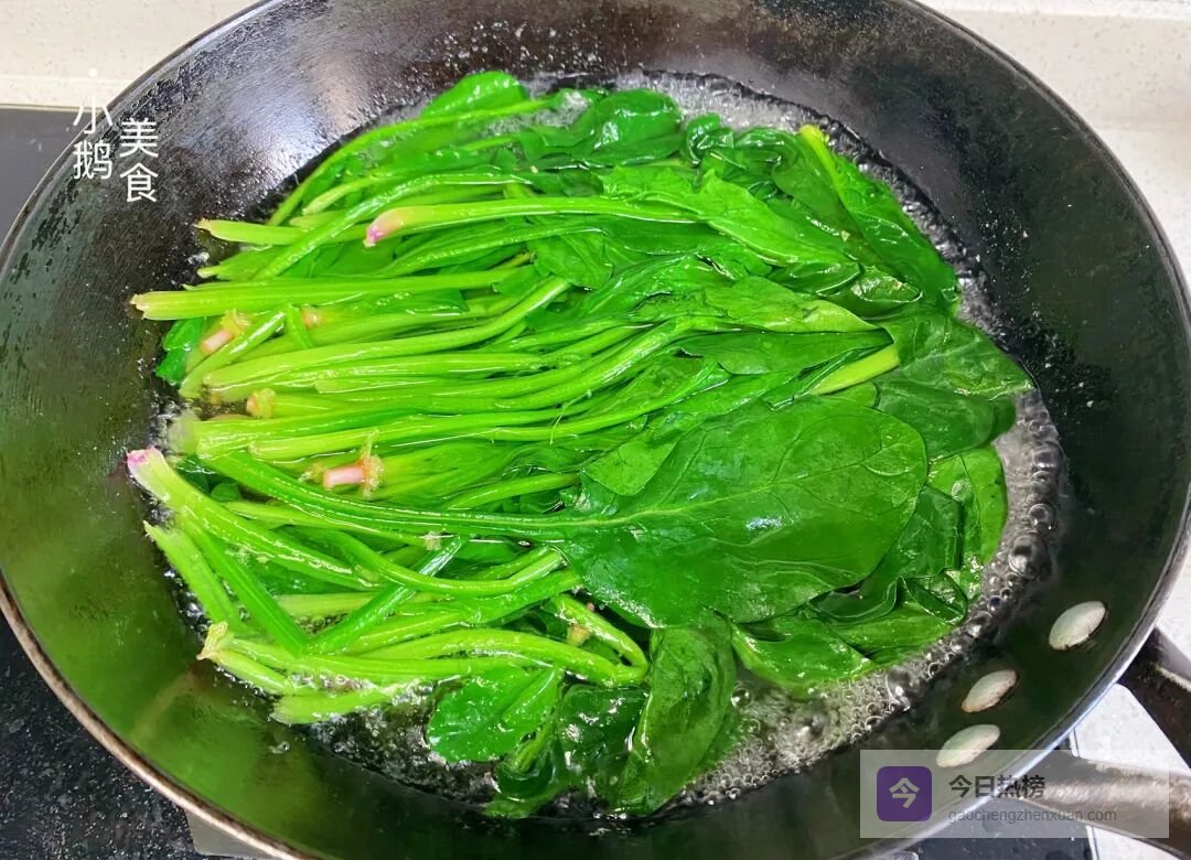 焯菠菜——菠菜洗净后焯水30秒去草酸,捞出立刻过凉水,保持翠绿不发黄。