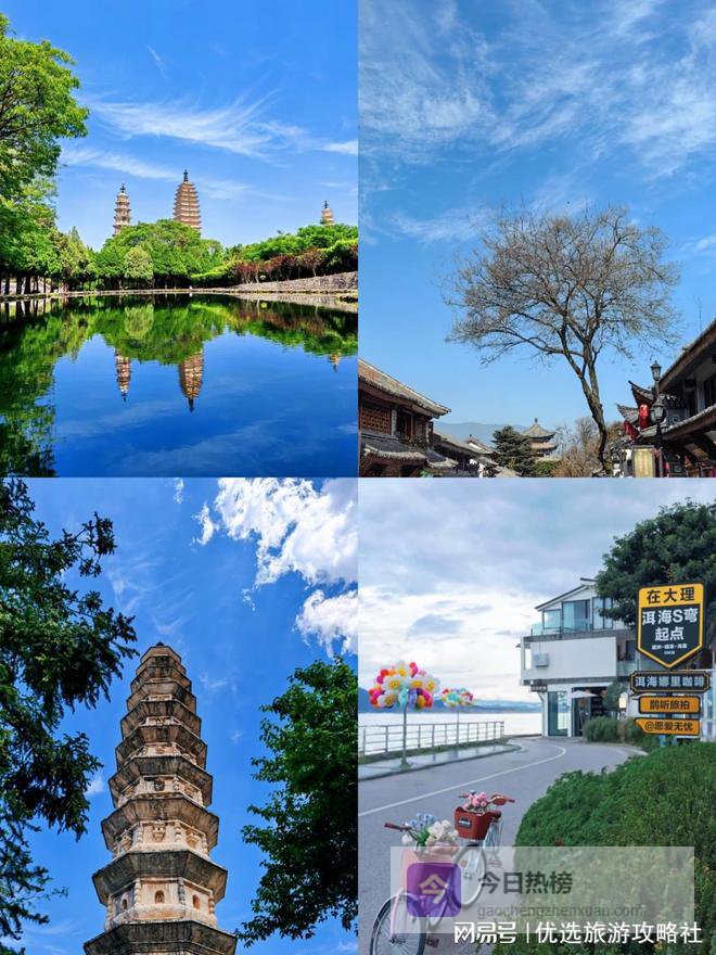 洱海:大理“母亲湖”,可骑行环海西路,或乘游船赏苍山倒影,推荐双廊、才村等临海小镇。大理古城:漫步复兴路,打卡五华楼、洋人街,夜游人民路感受文艺氛围。苍山:乘洗马潭索道登顶,俯瞰洱海全景,徒步玉带云游路,探访寂照庵多肉花园。喜洲古镇:看白族传统民居,尝喜洲粑粑,稻田边拍照超出片。崇圣寺三塔:大理地标,千年古塔与倒影公园同框,感受佛教文化底蕴。