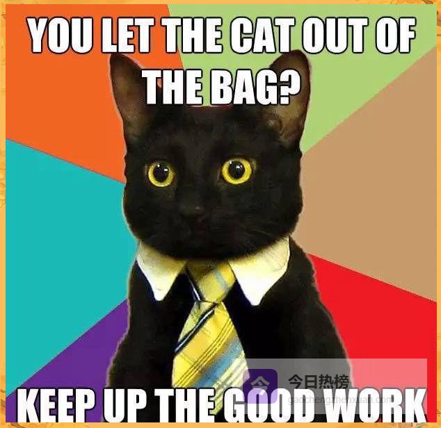 “The cat’s out of the bag”字面是“猫从袋子里跑出来了”,可美国人一听就懂:秘密已经守不住。