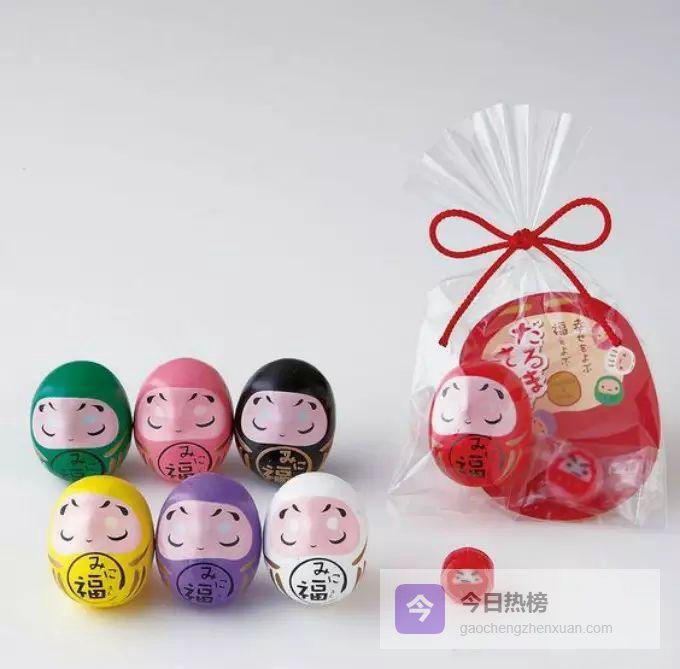 今天,日本街头的新年装饰、神社的御朱印帐、便利店的人气零食,几乎都能看见达磨。它圆滚滚的肚子上写着“願いが叶うぞ”,被高高举起,象征“辞旧迎新”。更有趣的是颜色密码: