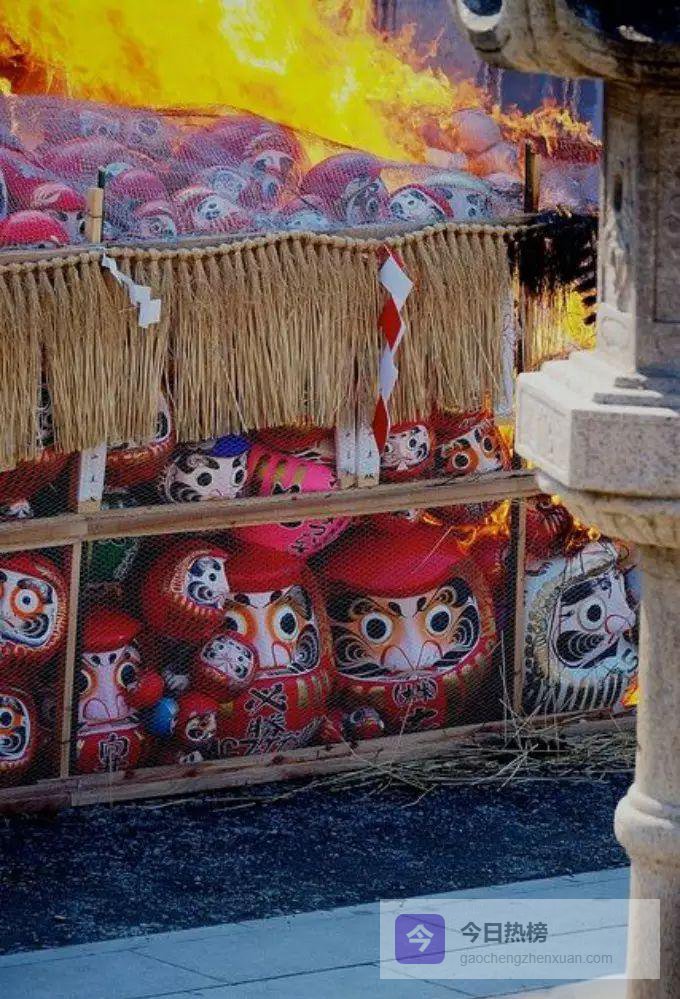 日本人给达磨留了一个“彩蛋”——没被许过愿的达摩只有一只眼珠。新年第一天,人们用墨水点上右眼,叫“开眼”;除夕夜再点左眼,叫“满愿”。到了神社,所有人把达磨留在原地,由神职人员统一焚烧,火光里完成一次集体辞旧迎新。没有烟火气的仪式感,大概就是日本人的浪漫。
