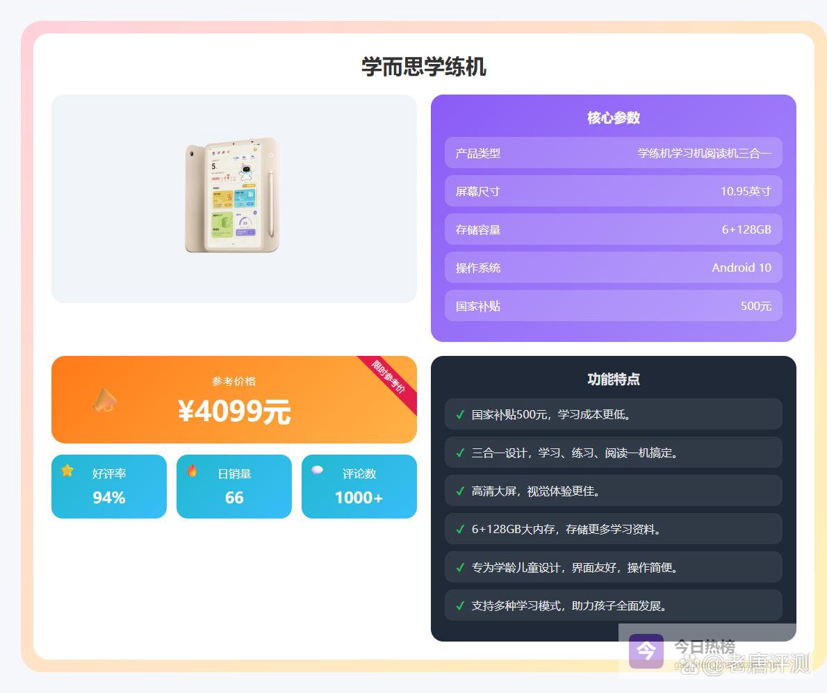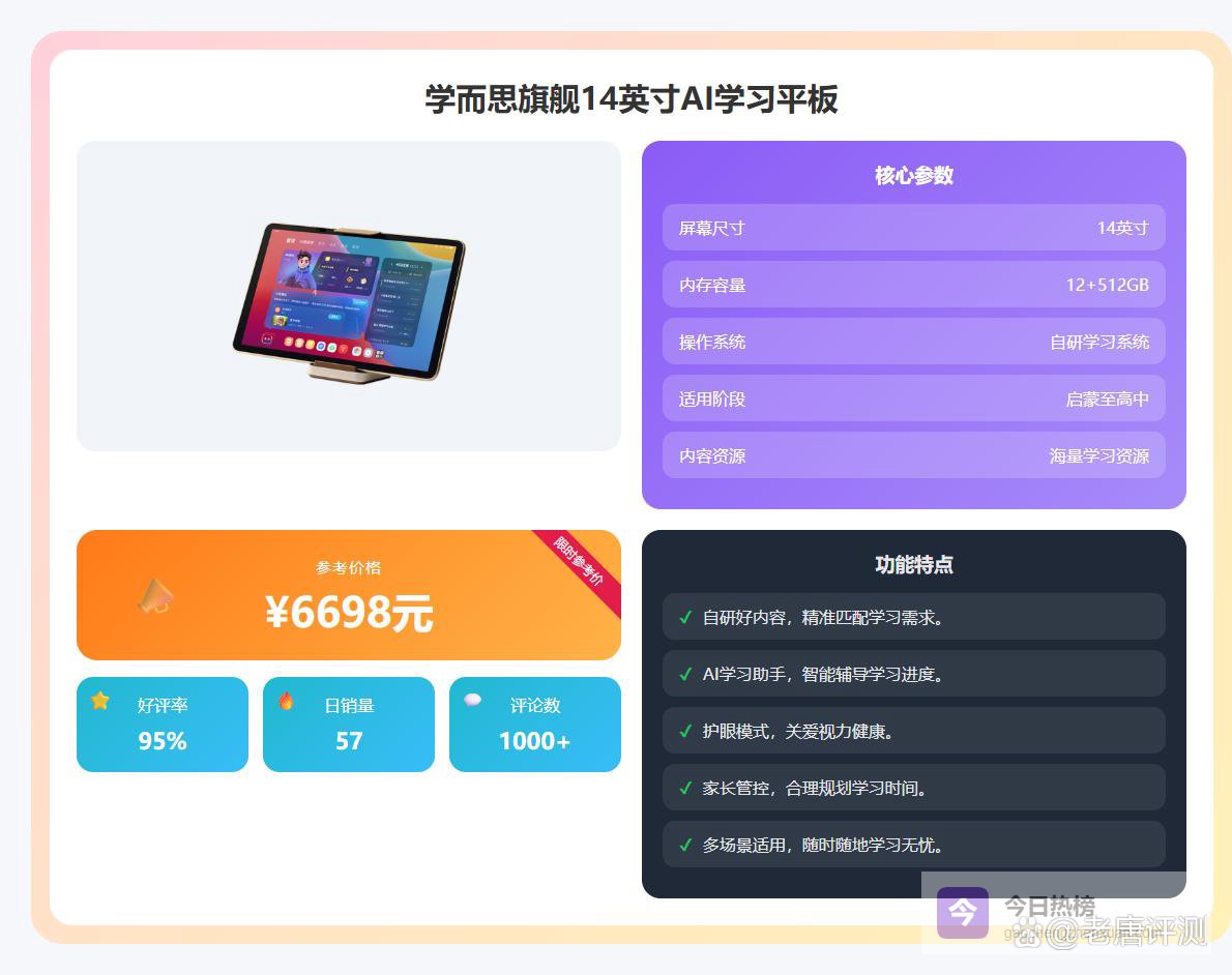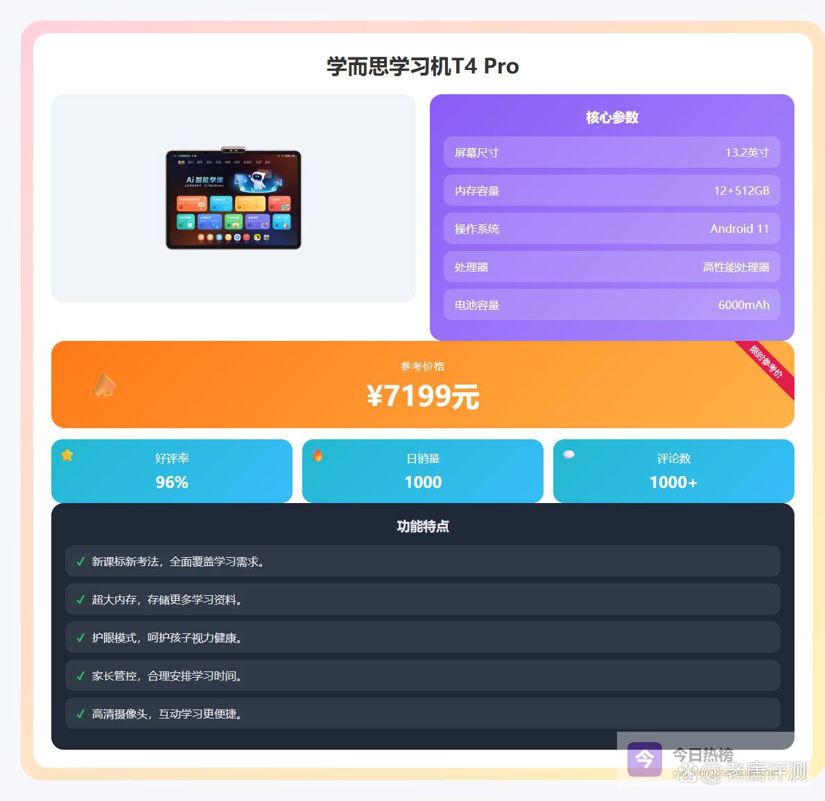 它的定位非常清晰:为那些追求最佳全科学习体验、需要顶级硬件支撑高清网课和复杂AI交互,且预算充足的家庭,提供一个“终极全能学习工作站”。如果学练机是“特种兵”,那它就是功能齐全的“航空母舰”。