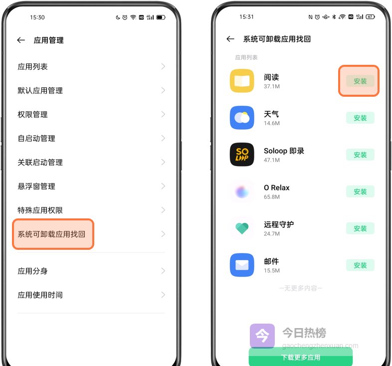 打开「设置-应用(应用管理)-系统可卸载应用找回」