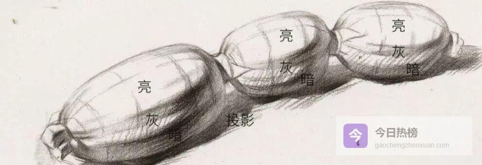 4.1 ▣ 起形与明暗分界用HB铅笔轻勾轮廓,近大远小用“缩形法”一眼搞定;接着用淡灰给每节标出明暗交界线,为后面铺色留好“地基”。