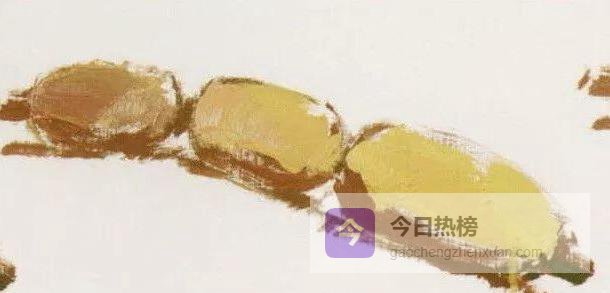 4.2 ▣ 第一遍铺色——先抓大块光影 从最亮的藕节开始,大面积平刷淡黄+白,把高光先“锁”住;紧接着用橘黄在暗面轻扫,让颜色自己“沉”下去。