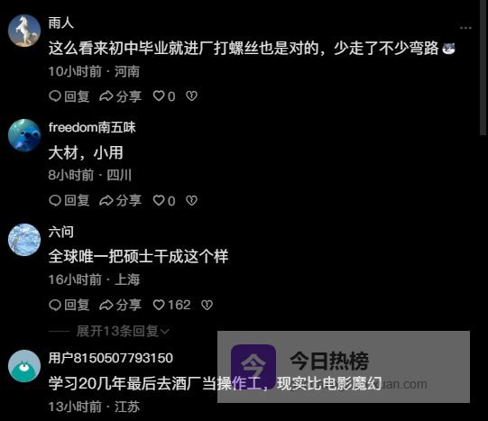 无论大家如何惊奇这种情况,未来肯定会更多。顶尖学生保底中游企业、中游学生挤占下游企业的就业生态,会变得稀松平常。而且很多名校硕士而言,不再想和其他的同档位的同学竞争,放弃在“卷不动”的热门行业苦苦挣扎,选择一个“稳得住”的企业岗位,也未必是错。
