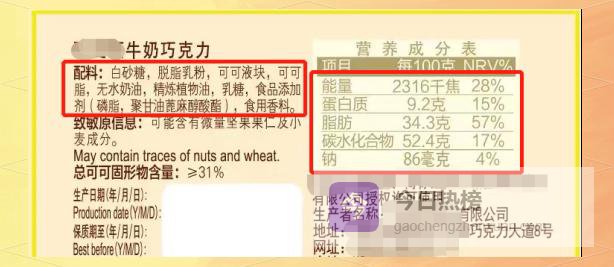 3.3 【 热量——“脂肪炸弹” 】每100 g牛奶巧克力能量高达553 kcal,脂肪34 g,钠86 mg。高糖+高脂+高盐的“三高”组合,让营养学家直接把它划入“垃圾零食”。吃多了不仅胖,还可能让孩子不好好吃饭,营养失衡雪上加霜。