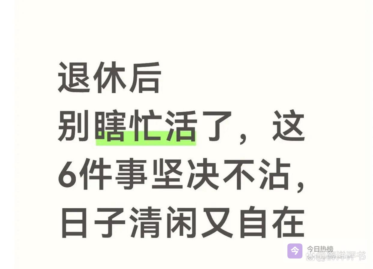 退休前,酒桌饭局是工作;退休后,那纯粹是消耗。以前那些称兄道弟的同事、酒肉朋友,凑在一起聊什么?无非是三件事:炫耀过去的辉煌,攀比现在的得失,传播未经证实的小道消息。低质量的社交,是对退休生活最残忍的“通货膨胀”。
