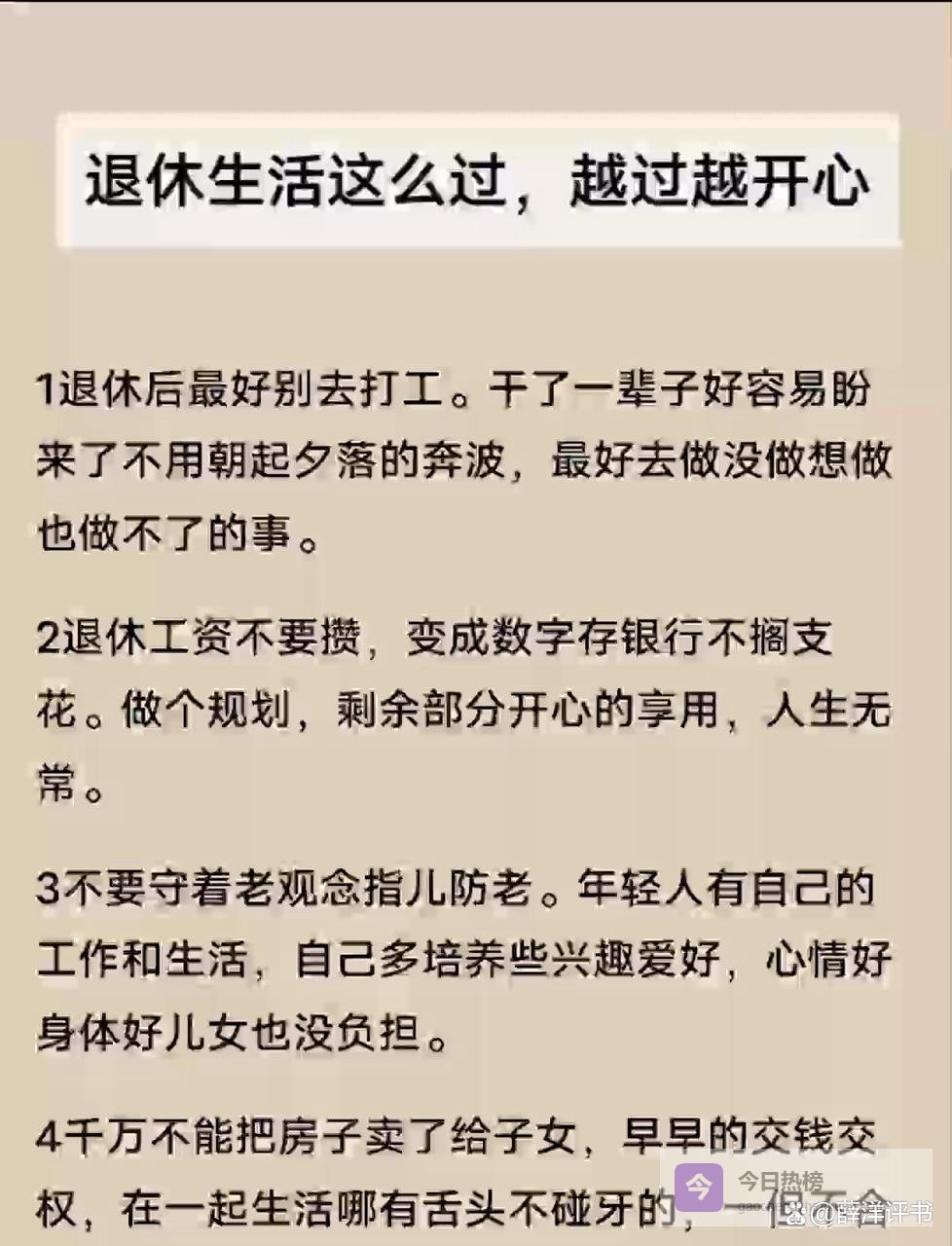 (烟快燃尽了,掸了掸灰)老伙计,退休是什么?是从一个被集体绑架的系统中“毕业”,你得亲手搭建自己的王国。这个王国里,边界是城墙,积蓄是粮草,心态是气候,健康是王座。