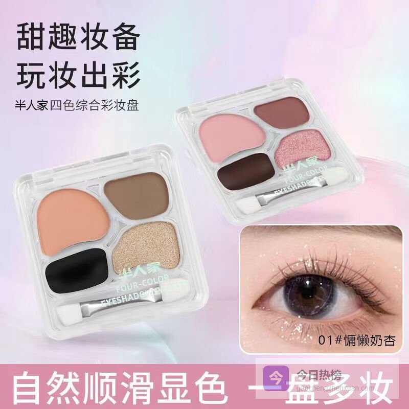 【品牌直营】半人家爱豆四色眼影盘提亮卧蚕眼睑下至眼线高光修容一体盘便携自带刷子01号+02号¥