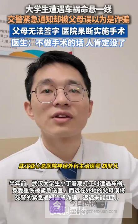 半年前的那个雨夜,大学生小林骑自行车返回宿舍途中被一辆失控轿车撞飞。送到医院时,他颅骨骨折、内脏出血,瞳孔已开始散大。急诊医生在病历上写下"濒死状态"四个触目惊心的字,手术室红灯随即亮起。与此同时,交警指挥中心正上演着一场令人揪心的通话——当值班民警拨通小林父母电话告知车祸消息时,电话那头传来了警惕的质问:"现在的诈骗手段都升级到咒人出事了吗?"