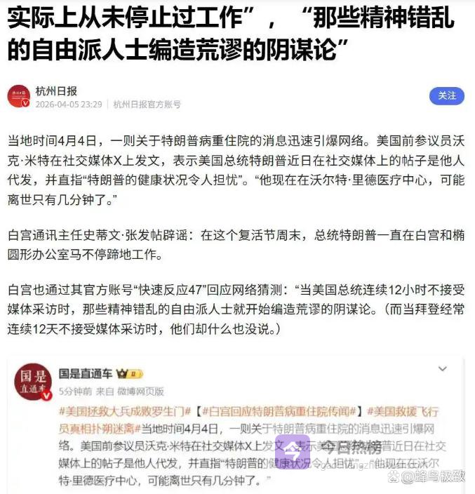 面对越烧越旺的谣言,白宫的反应,堪称教科书级别的“欲盖弥彰”。
