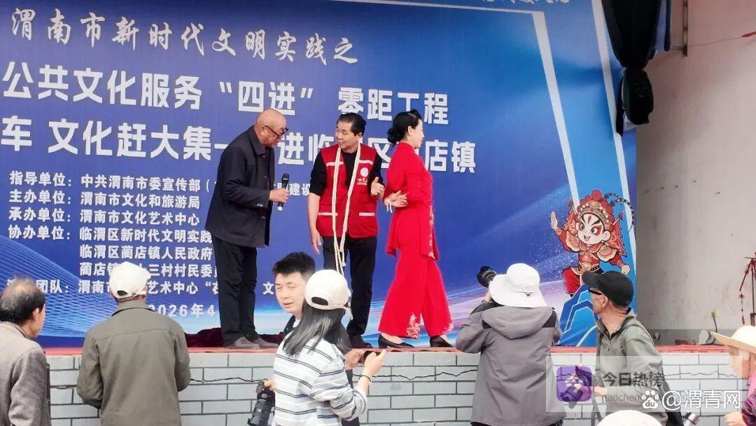 4月10日,渭南市新时代文明实践之公共文化服务“四进”零距工程——“乡村直通车 文化赶大集”走进临渭区蔺店镇李十三村,恰逢“李十三戏曲艺术季”暨乡村农家美食展同步开展,一场精彩的“文艺+乡村旅游”体验火热上演,戏曲雅韵、民俗歌舞、特色美食与田园花海相融,为当地村民及游客带来了一场沉浸式的春日文化盛宴。
