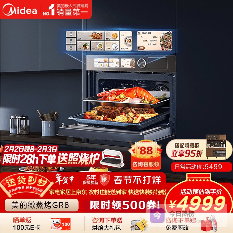 蒸烤箱什么牌子的性价比最高?型号盘点!推荐一:美的微霸GR6嵌入式5合1蒸烤箱