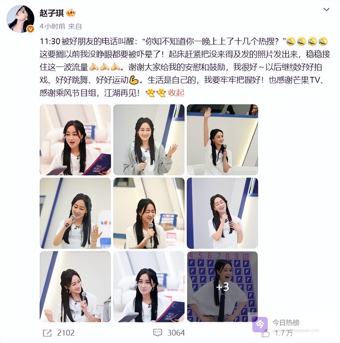 告别节目的小作文中,赵子琪感谢了节目组和平台,也是格局拉满。