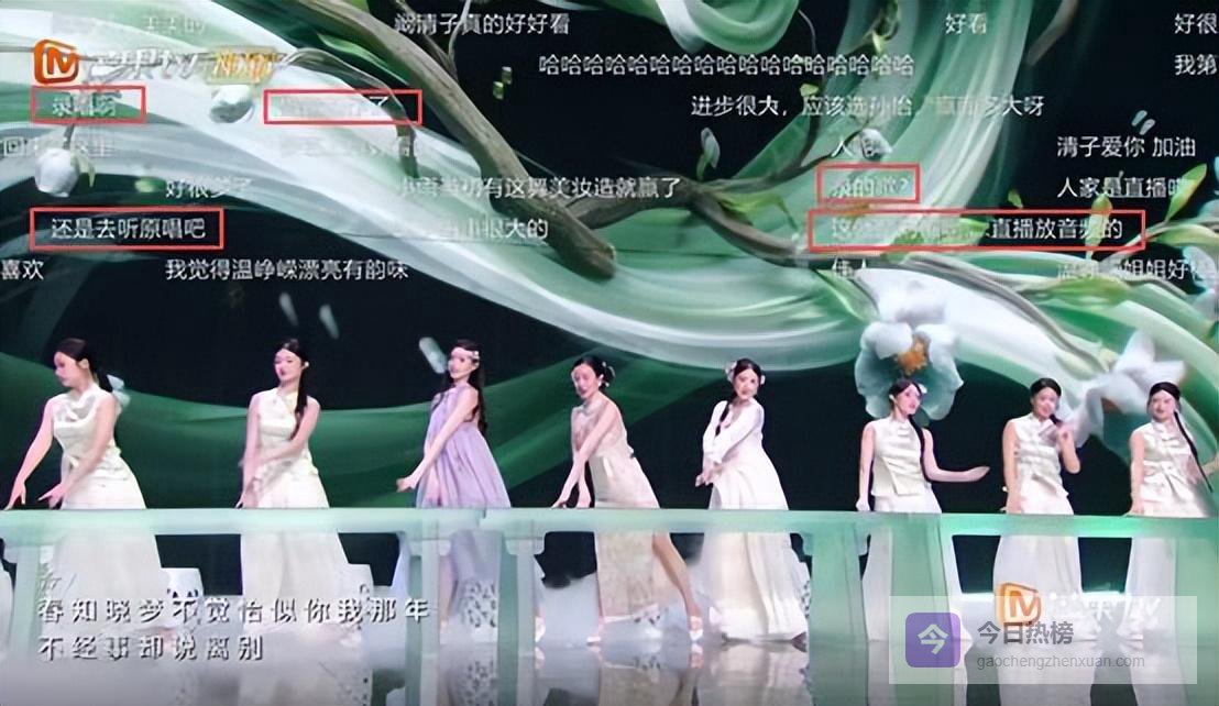 正式舞台上其实也没有好到哪去,只是没有与伴奏脱节,但是弹幕却炸锅了。
