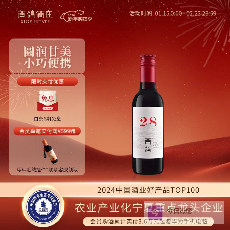【京东自营】西鸽酒庄N28赤霞珠小瓶干红葡萄酒187ml宁夏贺兰山国产红酒年货春节微醺¥