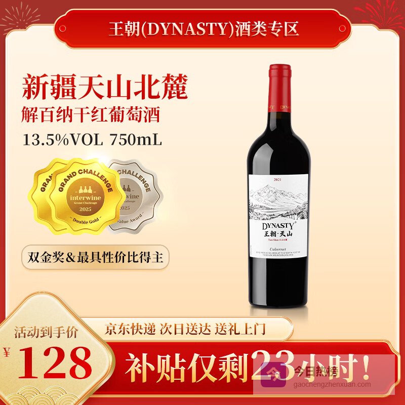 【京东自营】王朝天山解百纳干红葡萄酒年货节750ml*1瓶单支装国产红酒爆款¥