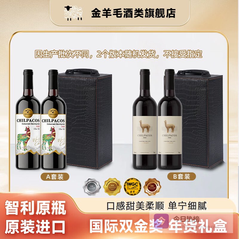 推荐入手:金羊毛双金奖智利西拉红酒礼盒750ml*2瓶