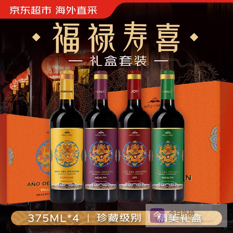 推荐入手:柏岱福禄寿喜礼盒红酒 375ml*4