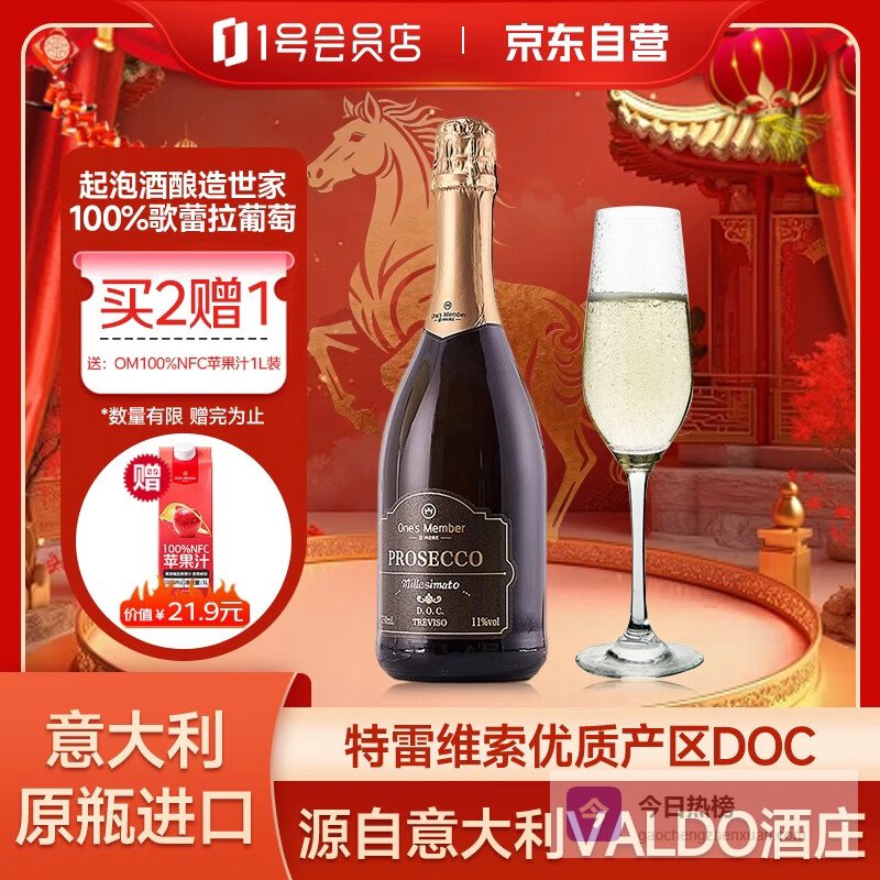 1号会员店意大利普罗塞克气泡葡萄酒750ml露营火锅烧烤佳节年货好礼¥
