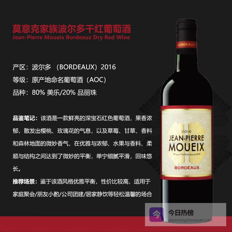 推荐入手:莫意克波尔多AOC干红2016葡萄酒750ml