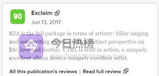 3.1 △ 《Ctrl》——一张“打破R&B体裁的生猛之作”2017年发行的《Ctrl》至今被乐迷反复回放。14首歌像14面镜子, 把爱、失去、背叛、焦虑与不安逐一摊开。Pithfork给出8.4分,MetaCritic均分高达86,Exclaim更直言:“SZA在艺术方面是完整的:致命的歌唱和歌曲创作能力,对生活、爱情与命运有独特的视角。《Ctrl》是精湛的作品,也是一款来自独特优秀艺术品的独特优秀专辑。”