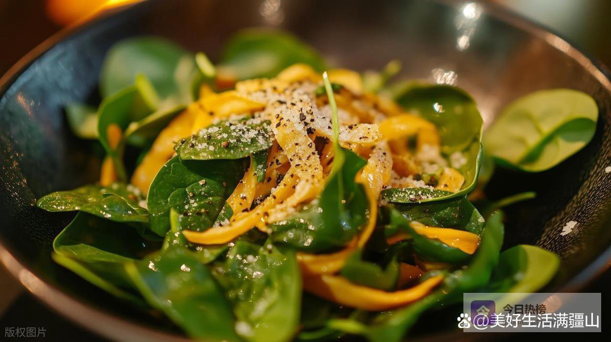 《素问》有言:“春宜食辛”,而菠菜的清润,恰是辛中之柔,是阳气升发时最温柔的引子。它不争不抢,只是静静躺在碗里,等你一口一口,把冬天的淤堵,轻轻化开。