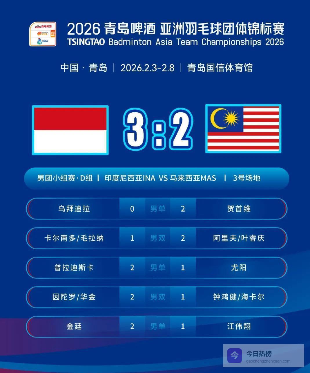男团的厮杀安排在下午5点。 1号场是马来西亚对日本,2号场是中国队迎战中国台北队,3号场由韩国队对阵印度队,4号场则是泰国和印尼再度碰撞。 每一组对阵,背后都是错综复杂的恩怨和实实在在的利害关系。