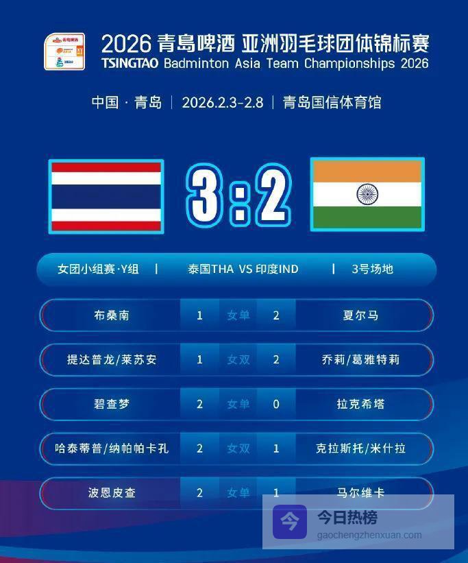 这不,淘汰赛对阵表一出来,火药味瞬间弥漫。 2月6号,也就是今天,战斗立刻升级。 女团四场四分之一决赛在上午10点同时开打:中国队在1号场迎战刚刚被逆转、憋着一肚子火的印度队;马来西亚在2号场挑战由安洗莹带领的韩国队;印尼和泰国在3号场继续纠缠;日本则和中国台北在4号场争夺另一个四强名额。