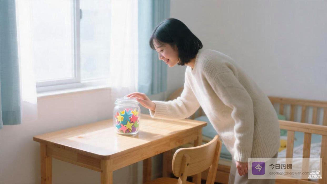 我没告诉她,其实我喜欢的不是星星,是她折星星时候的样子。她坐在书桌前,低着头,小手认真地叠来叠去,嘴里念念有词,偶尔抬起头问我一句:“妈妈,这个角对齐了吗?”