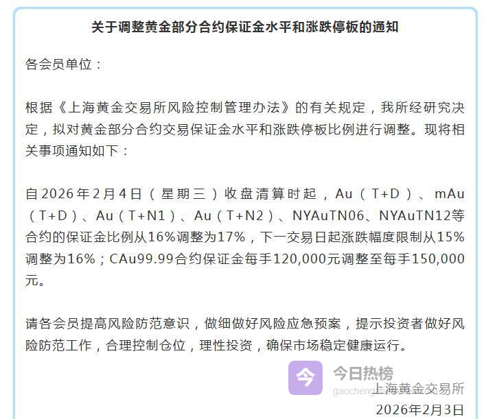 就在前一个交易日(2月3日),上海黄金交易所同步发布两则通知——