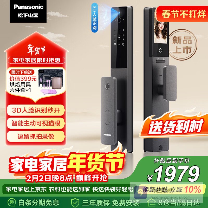 【京东自营】松下智能门锁3D人脸识别电子锁可视猫眼大屏指纹锁密码锁EMW6115BH¥