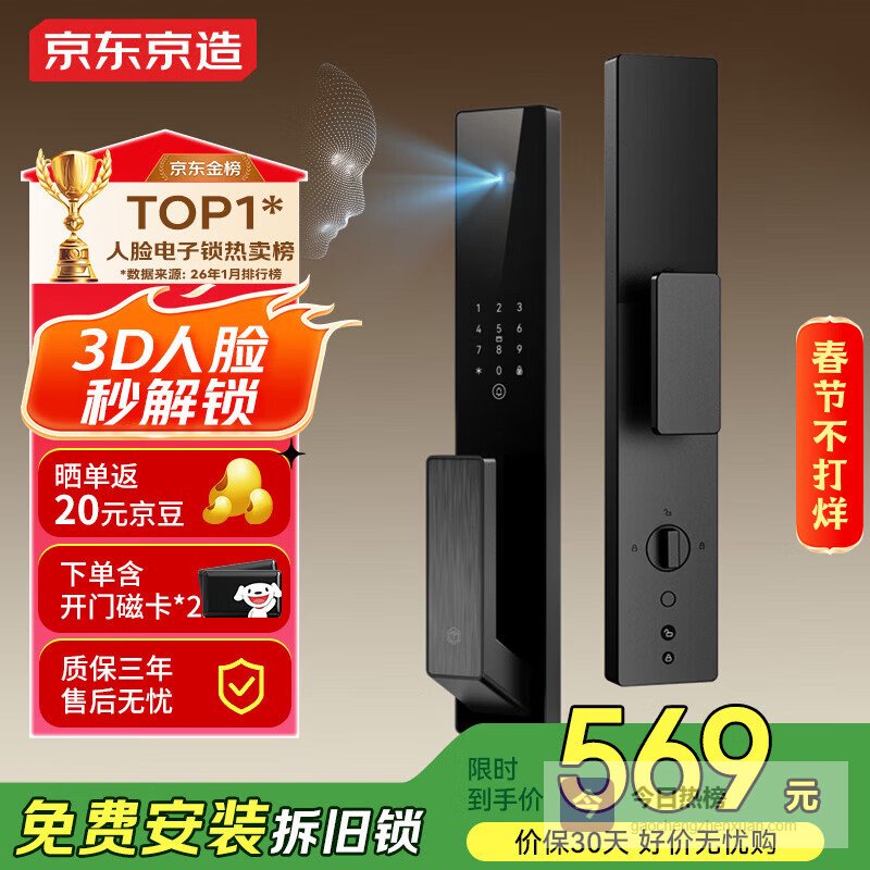 推荐入手:京东京造M30智能人脸识别门锁