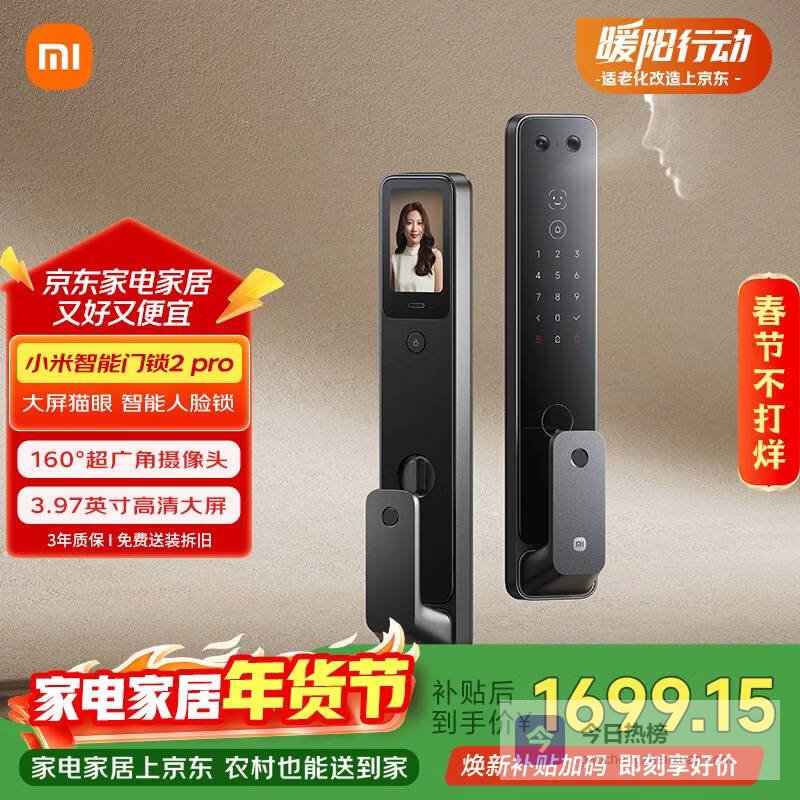 【京东自营】小米智能门锁2Pro3D人脸识别可视猫眼大屏指纹锁电子锁密码锁¥