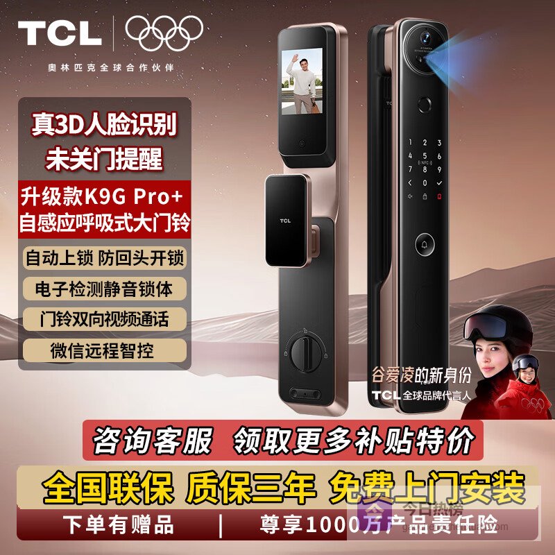 【品牌专卖】TCL人脸识别智能锁可视猫眼指纹锁K9GPro+升级版防盗未关门提醒门锁升级版K9GPr¥