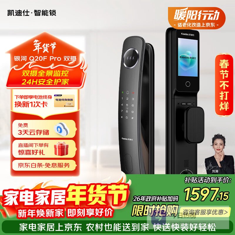 【京东自营】凯迪仕智能门锁人脸识别可视猫眼大屏全自动指纹锁密码锁Q20FPro双摄¥