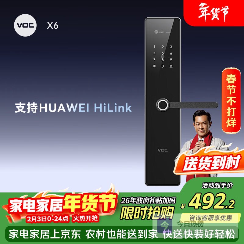 【京东自营】VOC智能门锁指纹锁电子锁密码锁入户门C级锁芯门锁家用防盗门X6¥
