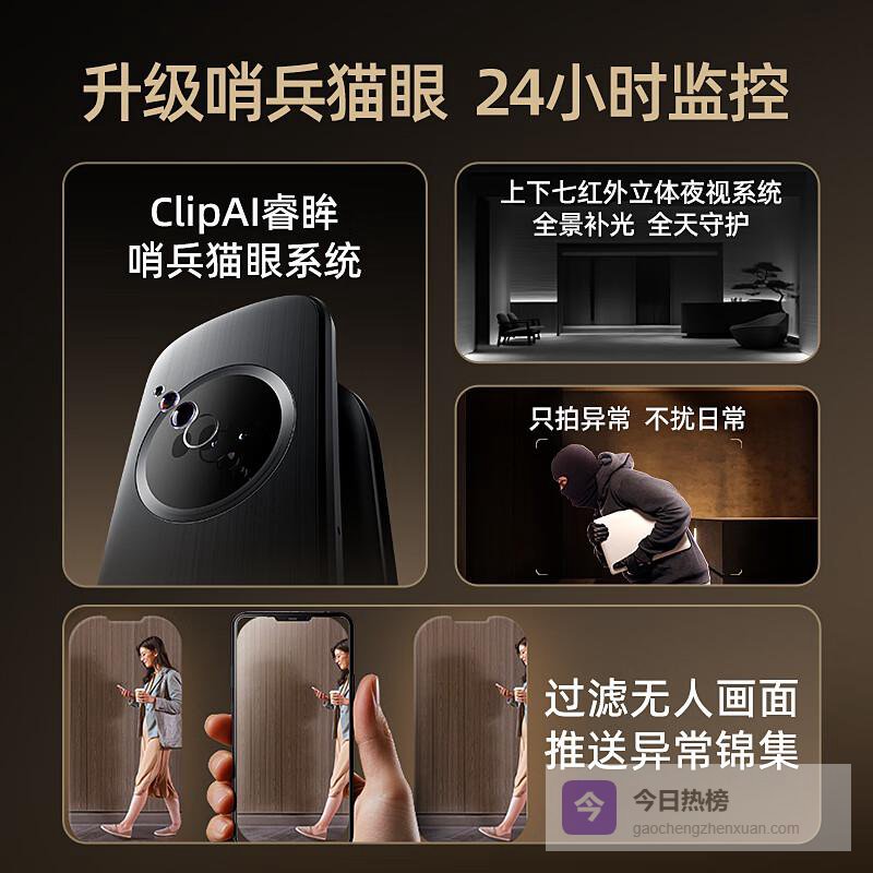 高清监控系统:双摄全景监控加上红外夜视,全天候守护门外动态,无论白天晚上,都能随时掌握外部情况。