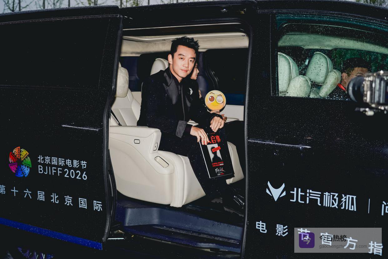 作为本届北影节的官方唯一指定用车,极狐问道V9的亮相可谓是高调而不张扬。车身上醒目的“BJIFF 2026”标识,加上“北汽极狐”的品牌LOGO,在雨夜灯光的映衬下,质感拉满。虽然雨滴打在车窗上略显朦胧,但依然挡不住车内那份舒适与静谧。郑恺坐在极狐问道V9的后排,手里紧握着一本印有“寻人启事”的书籍,这既是电影《消失的人》的宣传物料,也与极狐问道V9“三排平权”的豪华理念不谋而合——无论前排后排,都是主角,都是被关注的重心。