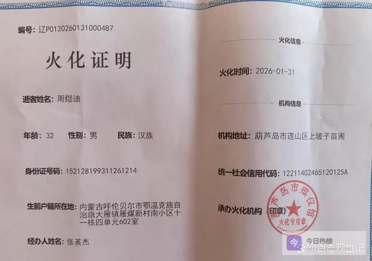 自丈夫离世,女子常感昏昏沉沉,孤身一人,手忙脚乱地料理了丈夫的后事。在火化证明上,年龄一栏赫然标注着“32岁”,字迹分外刺目,众多网友目睹此情此景,无不为之感到痛心。