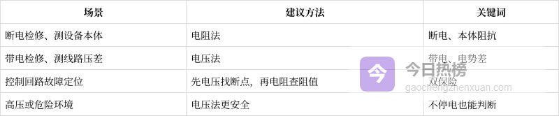 记住:没有绝对好坏,只有合不合适。断电就测电阻,带电就测电压,先大后小、先外后内,故障往往自己就“露馅”了。