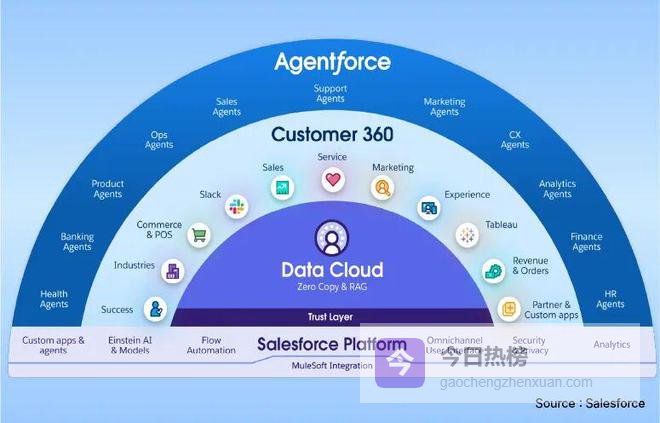 平台层:Salesforce(Agentforce)、ServiceNow(Now Assist)、SAP(Joule)、Workday(Illuminate)。这是「Agentic Process嵌入企业软件」的主战场,买单方是有成熟CRM/ERP体系的大企业,竞争核心是开箱即用的业务场景深度和数据整合能力。
